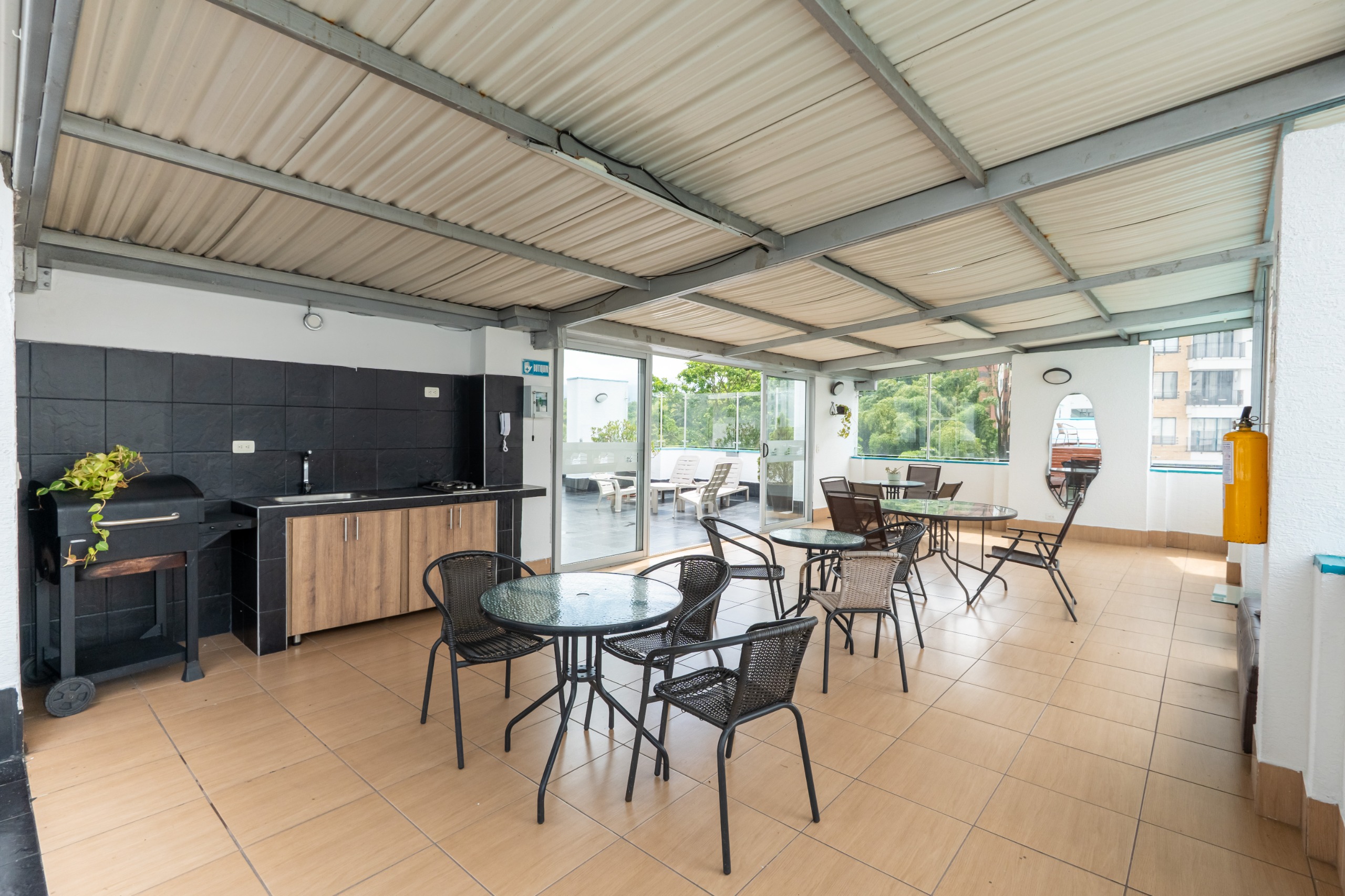 El inmueble hace parte de un edificio construido en 2014, con completas zonas comunes y amenidades tipo club que elevan la calidad de vida: ascensor, gimnasio, salón social, jacuzzi, planta eléctrica, parqueadero para residentes y visitantes, además de portería con vigilancia 24/7 y circuito cerrado de TV.