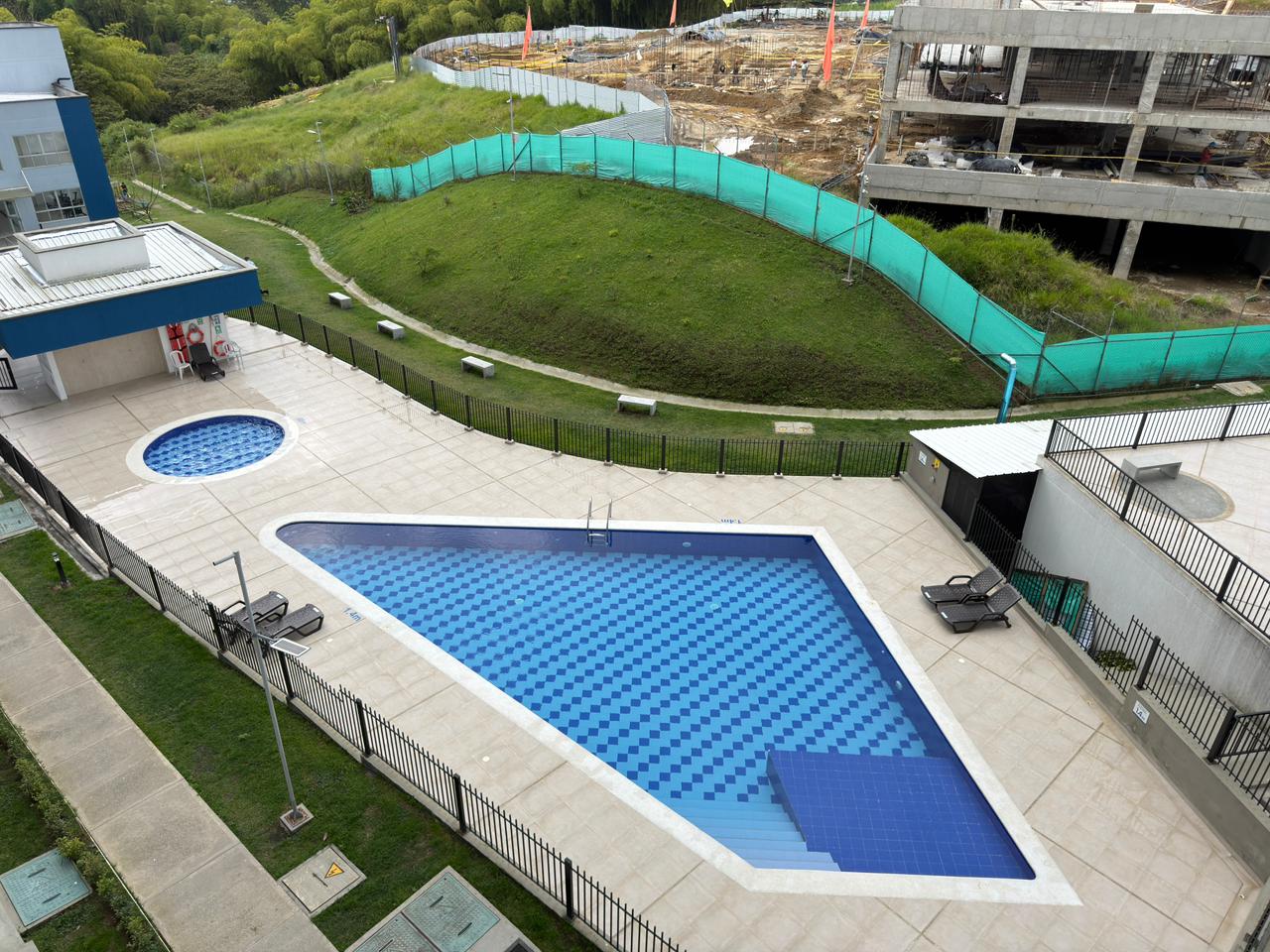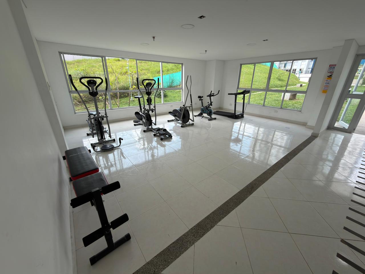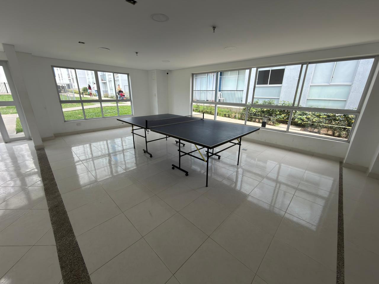 El conjunto residencial ofrece diversas zonas comunes para el disfrute de sus residentes, entre ellas piscinas, gimnasio, mesa de ping pong, zona para mascotas, cancha en grama y tierra, y parque infantil. El apartamento cuenta con parqueadero comunal.